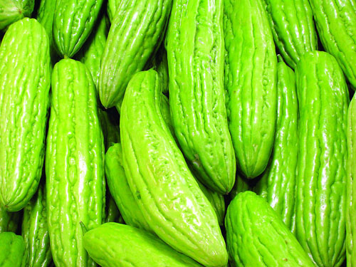 苦瓜(學(xué)名:Momordica charantiaL.)葫蘆科苦瓜屬植物,一年生攀援狀柔弱草本,多分枝;莖、枝被柔毛。卷須纖細(xì),不分歧。葉柄細(xì)長;葉片膜質(zhì),上面綠色,背面淡綠色,葉脈掌狀。雌雄同株。雄花花梗纖細(xì),被微柔毛;苞片綠色,稍有緣毛;花萼裂片卵狀披針形,被白色柔毛;花冠黃色,裂片被柔毛;雄蕊離生。雌花單生,